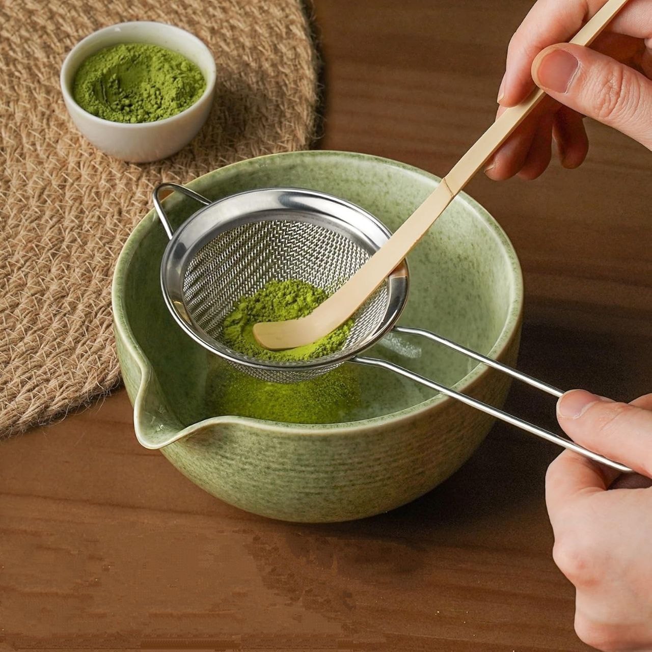 تعداد قطعات: 7 تکه کامل شامل ( کاسه ماچا ، همزن بامبو ، قاشق بامبو ، الک ، پایه همزن ، ظرف ماچا ، دستمال مخصوص) )